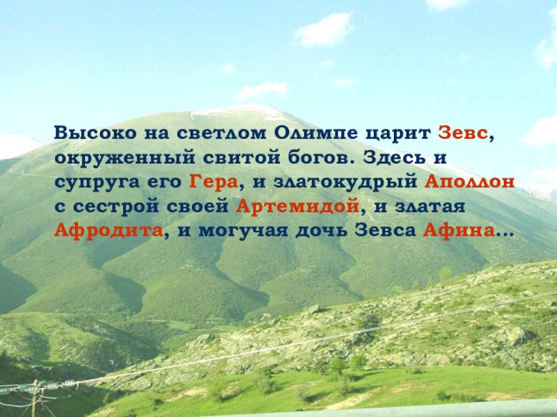 Слайд 16 Высоко на светлом Олимпе царит Зевс, окруженный свитой богов.
