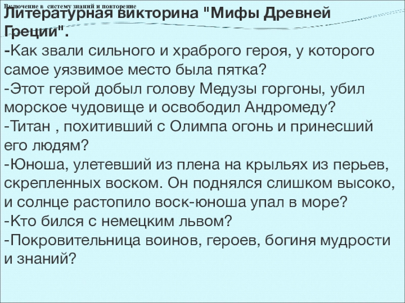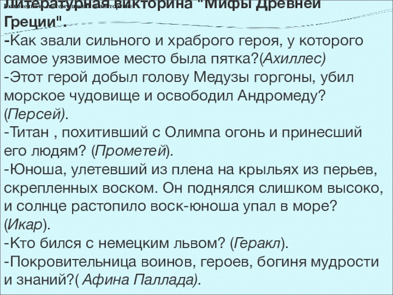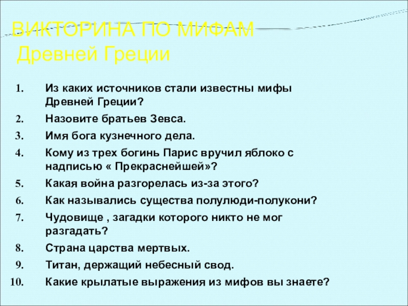 Слайд 37ВИКТОРИНА ПО МИФАМ