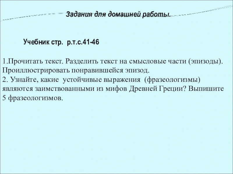 Послушаем миф и узнаем, сработал ли план Одиссея.с.41-46 Чтение учителем
