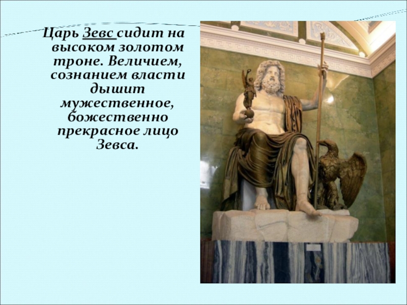 Слайд 17 Царь Зевс сидит на высоком золотом троне. Величием, сознанием