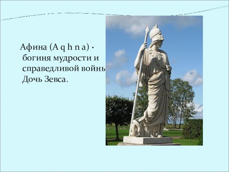 Слайд 21 Афина (A q h n a) · богиня мудрости