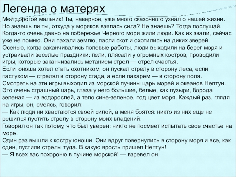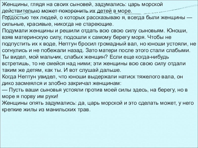 Слайд 15Женщины, глядя на своих сыновей, задумались: царь морской действительно может похоронить