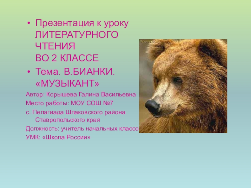 Тема. В.БИАНКИ. «МУЗЫКАНТ»