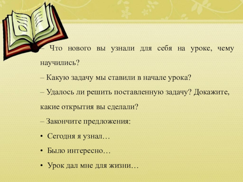 Это сайт презентаций, где можно хранить и обмениваться своими презентациями, докладами, проектами, шаблонами в формате PowerPoint с другими пользователями. Мы помогаем школьникам, студентам, учителям, преподавателям хранить и обмениваться учебными материалами.