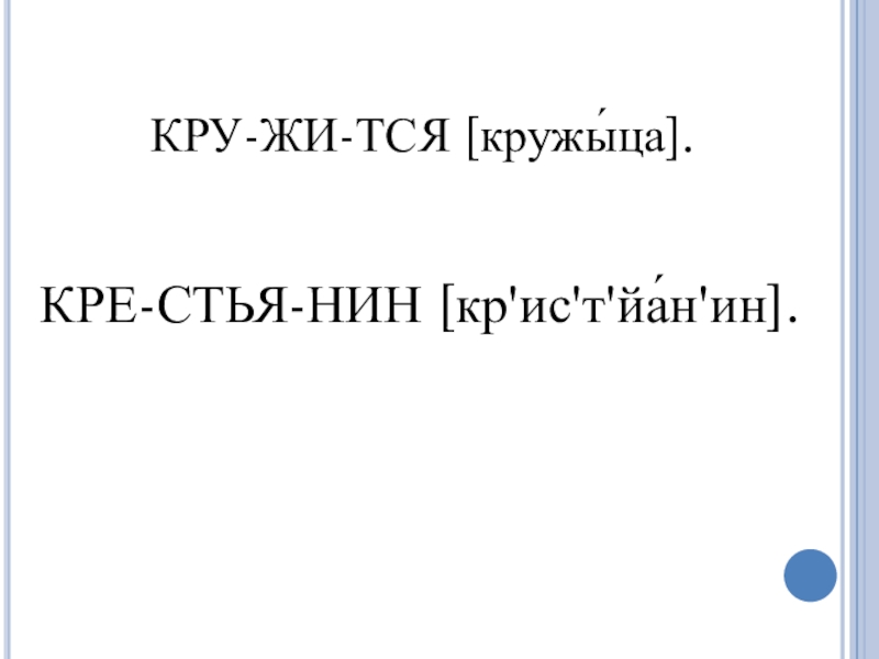 КРУ-ЖИ-ТСЯ [кружы́ца].КРЕ-СТЬЯ-НИН [кр'ис'т'йа́н'ин].