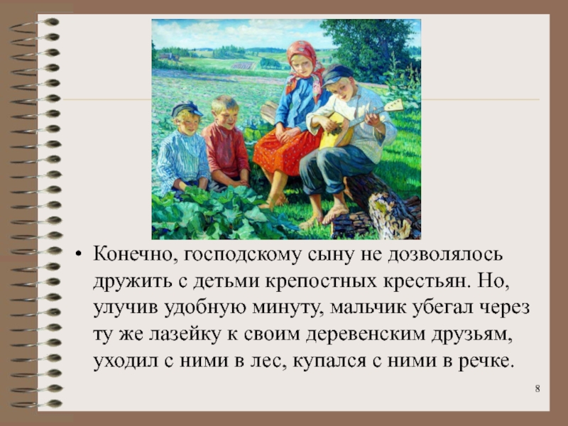 Конечно, господскому сыну не дозволялось дружить с детьми крепостных крестьян. Но,