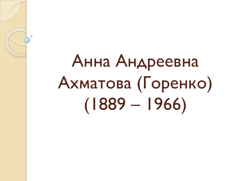 Слайд 1Анна Андреевна Ахматова (Горенко) (1889 – 1966)