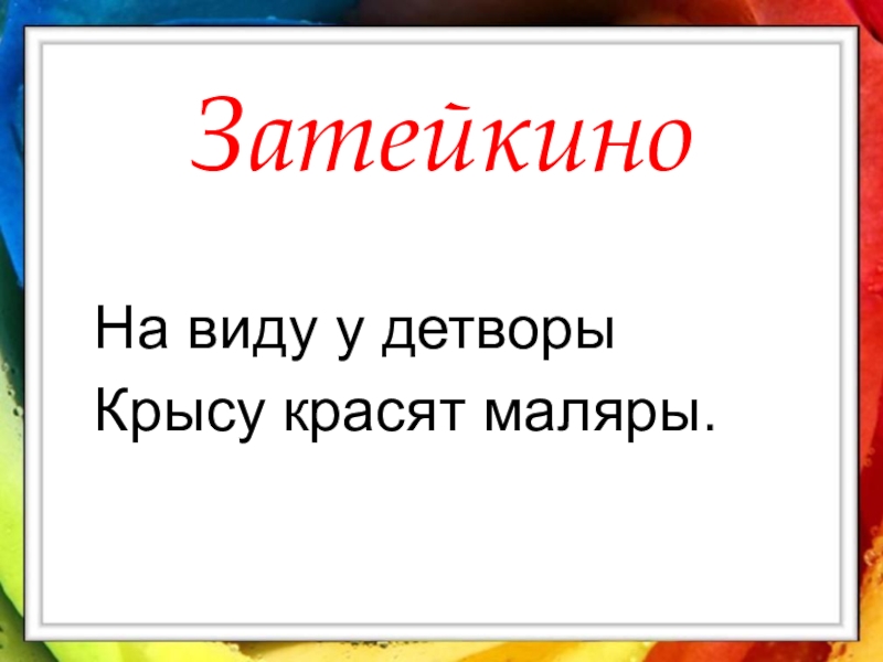 Затейкино   На виду у детворы  Крысу красят маляры.