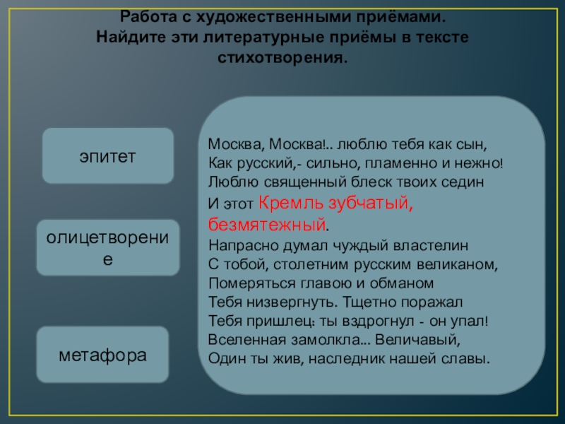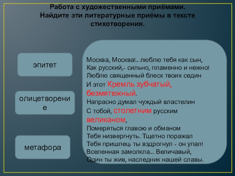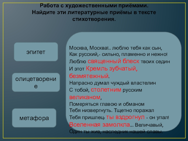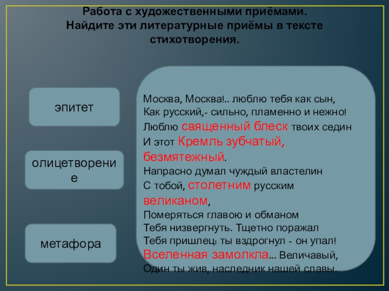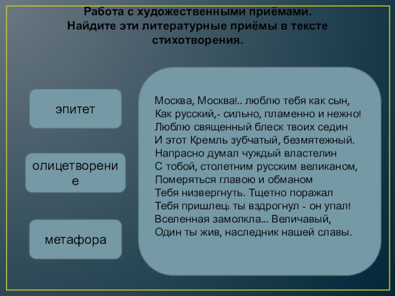 Найдите эти литературные приёмы в тексте стихотворения.