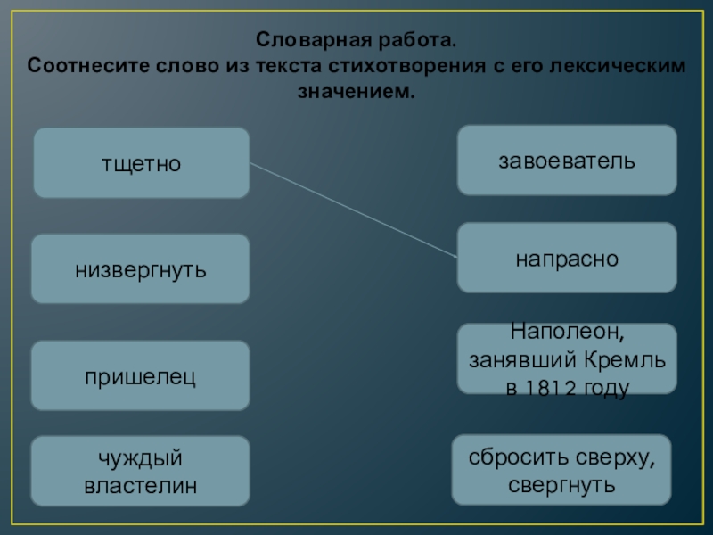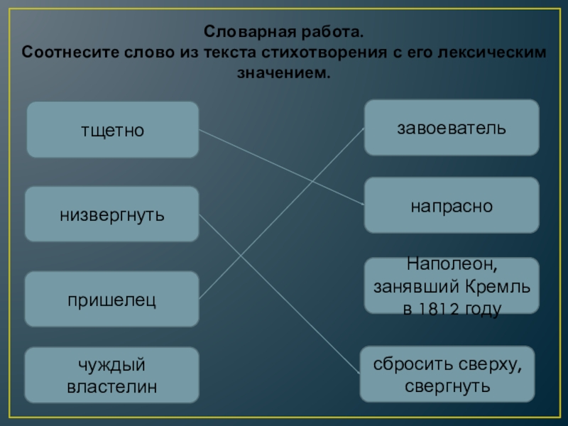Соотнесите слово из текста стихотворения с его лексическим значением.