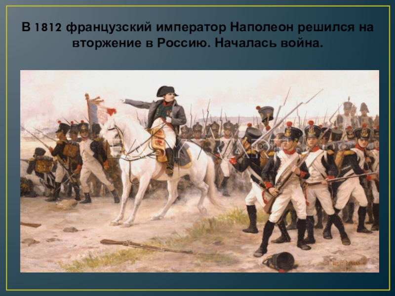 Слайд 22В 1812 французский император Наполеон решился на вторжение в Россию. Началась