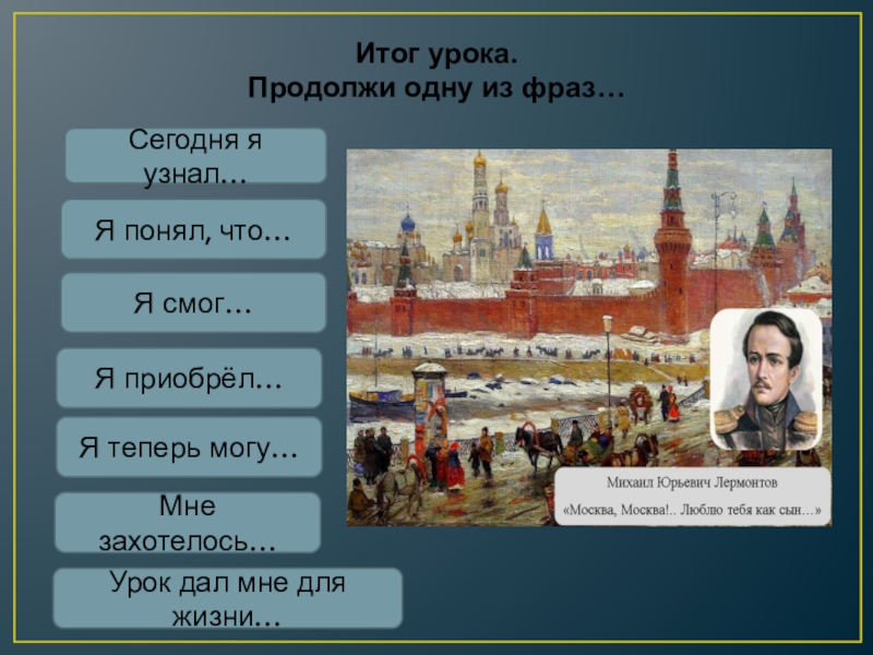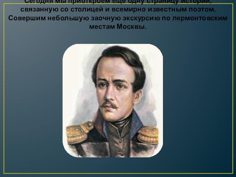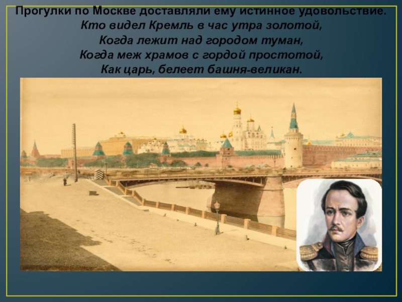Слайд 7Михаил Юрьевич Лермонтов говорил: «Москва есть и будет всегда мое отчество.