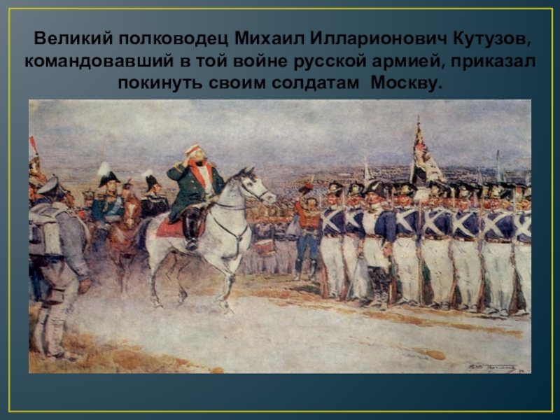 Слайд 23 Великий полководец Михаил Илларионович Кутузов, командовавший в той войне русской