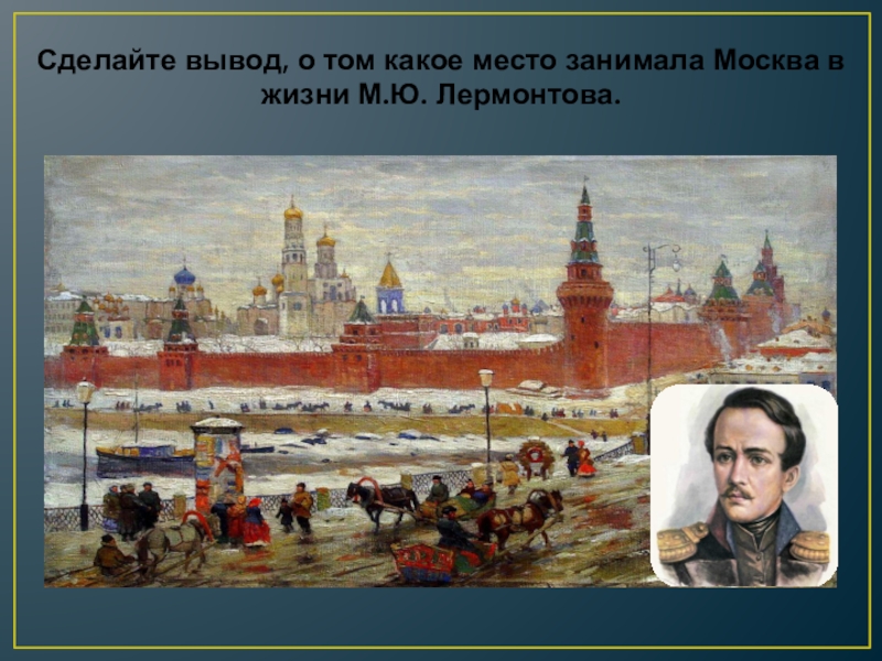 Слайд 19Сделайте вывод, о том какое место занимала Москва в жизни М.Ю.