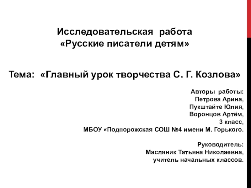 МБОУ «Подпорожская СОШ №4 имени М. Горького.