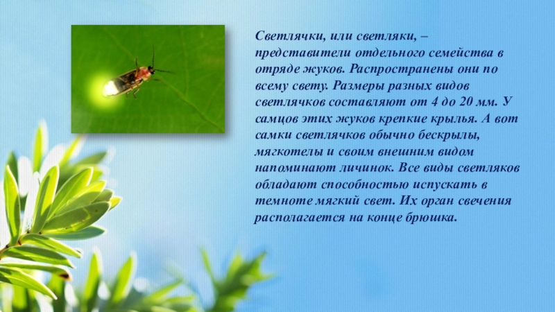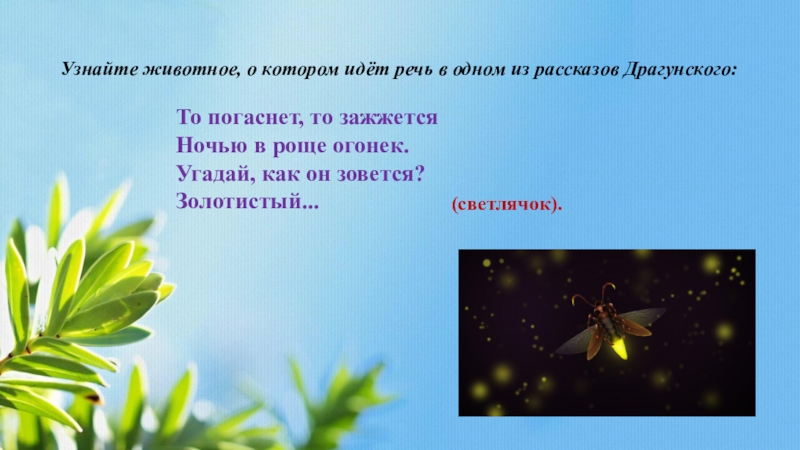 ("Светлячок", "Встреча со светлячком", "Живое чудо", "Крошечная звездочка в коробке")