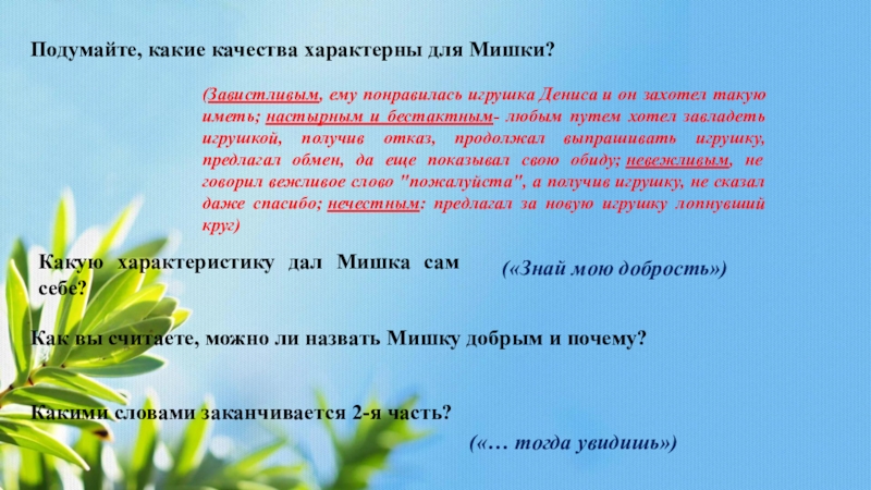 Как вы считаете, можно ли назвать Мишку добрым и почему?