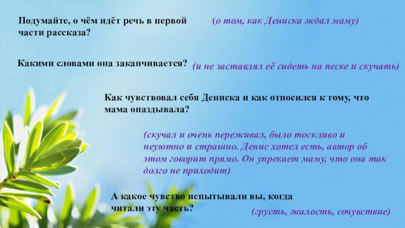 Как чувствовал себя Дениска и как относился к тому, что мама опаздывала?