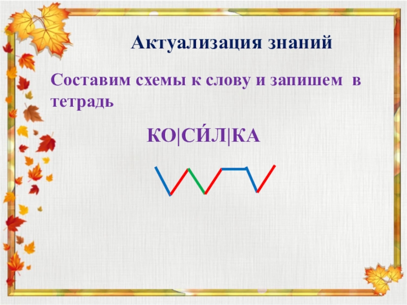 Актуализация знанийКО|СИ́Л|КАСоставим схемы к слову и запишем в тетрадь