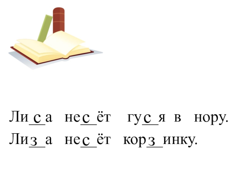 Ли__а  не__ёт  гу__я в  нору.Ли__а  не__ёт  кор__инку.сссзсз