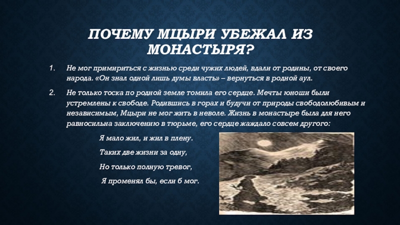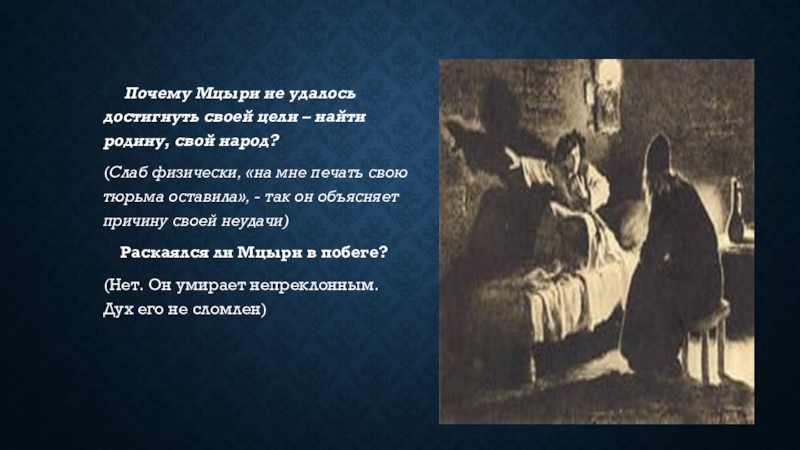 Слайд 18 Почему Мцыри не удалось достигнуть своей цели –