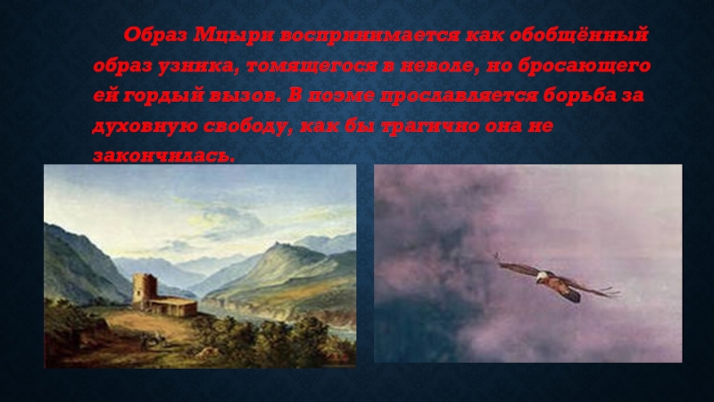 Слайд 20 Образ Мцыри воспринимается как обобщённый образ узника,