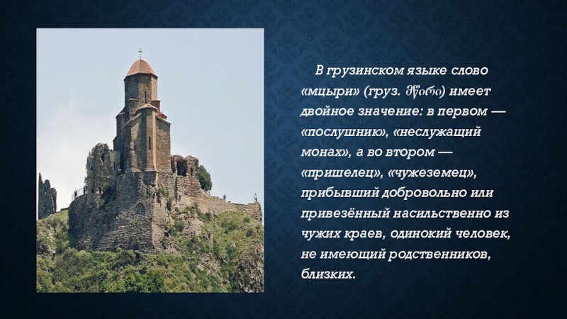 В грузинском языке слово «мцыри» (груз. მწირი) имеет
