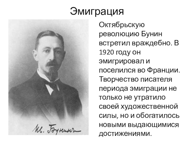 Октябрьскую революцию Бунин встретил враждебно. В 1920 году он эмигрировал