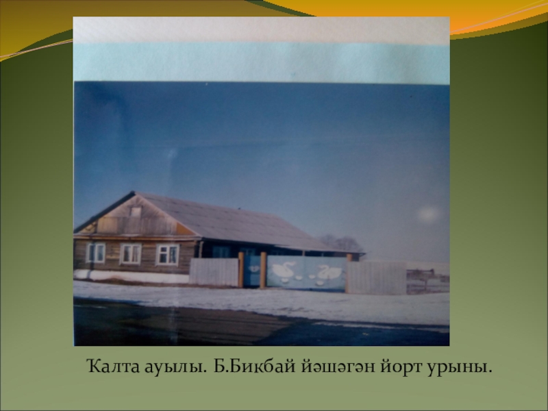 Слайд 12Ҡалта ауылы. Б.Бикбай йәшәгән йорт урыны.