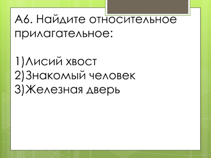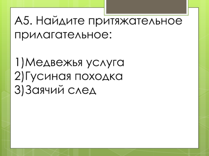 Слайд 6А5. Найдите притяжательное прилагательное: