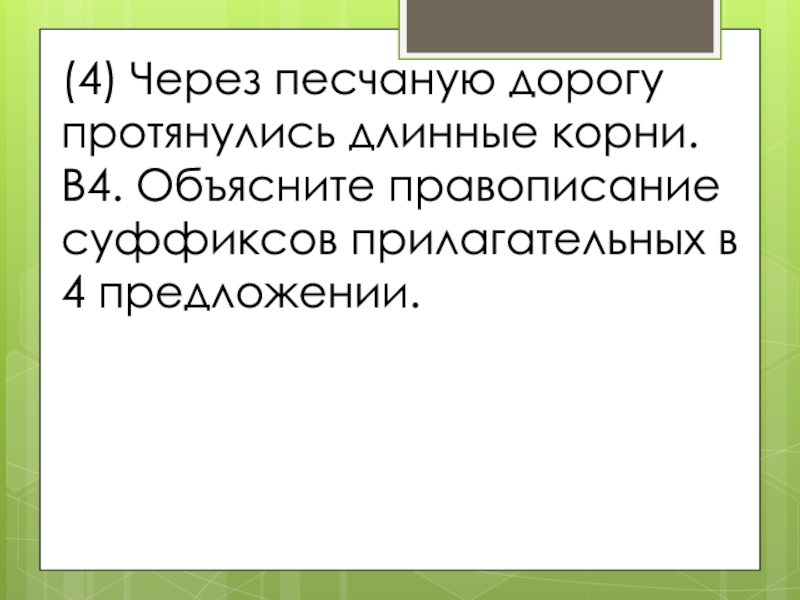 Слайд 19(4) Через песчаную дорогу протянулись длинные корни.