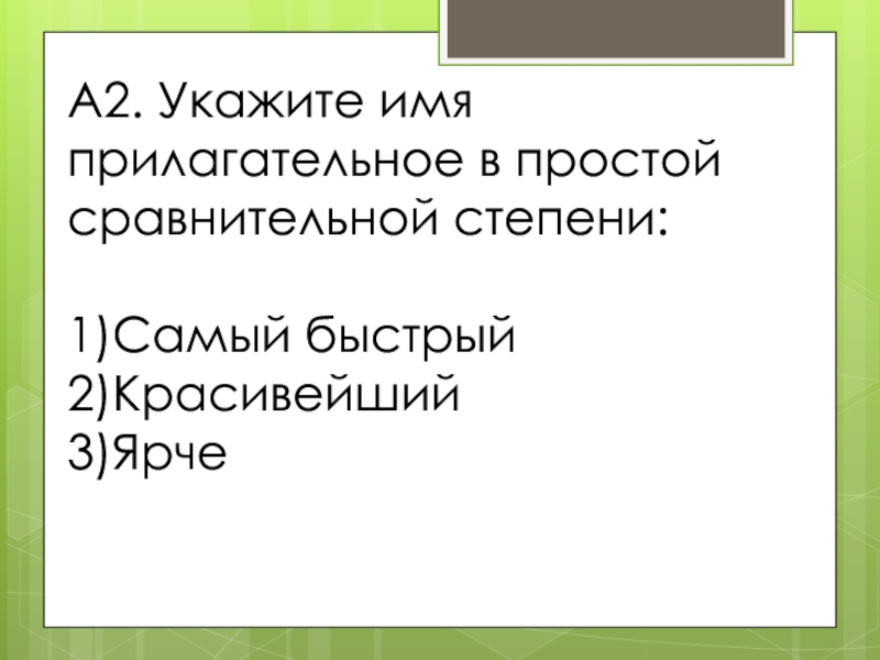 Слайд 3А2. Укажите имя прилагательное в простой сравнительной степени: