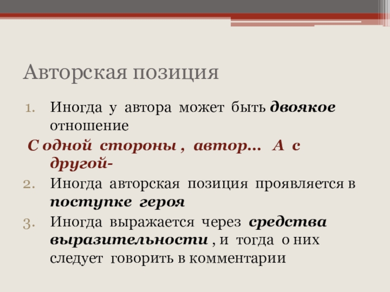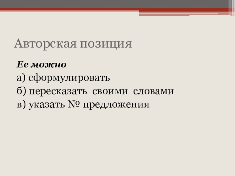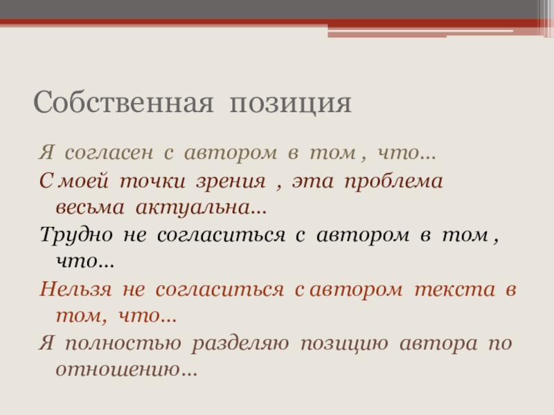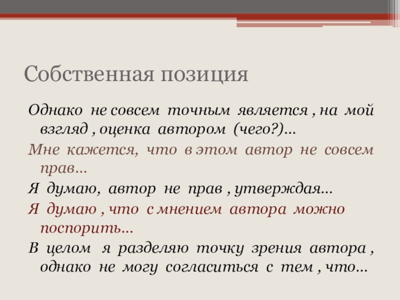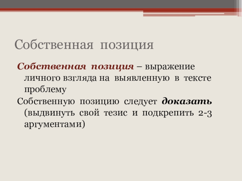 Собственная позиция – выражение личного взгляда на выявленную в тексте