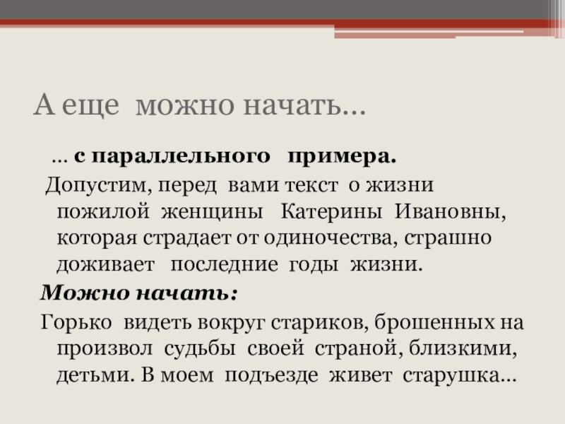 вами текст о жизни пожилой женщины Катерины Ивановны, которая страдает от одиночества, страшно доживает последние годы жизни.