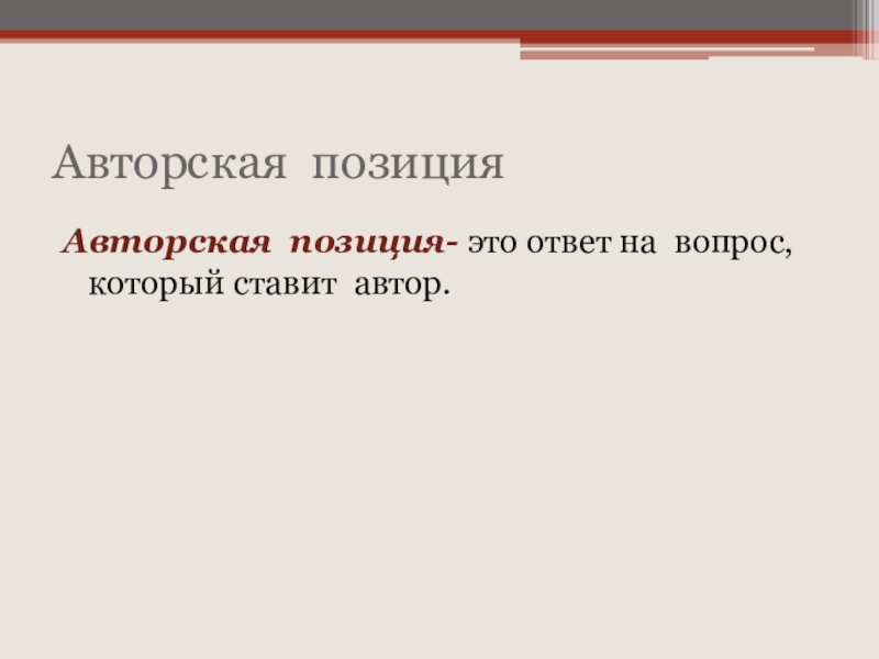 Авторская позиция- это ответ на вопрос, который ставит автор.