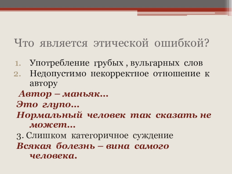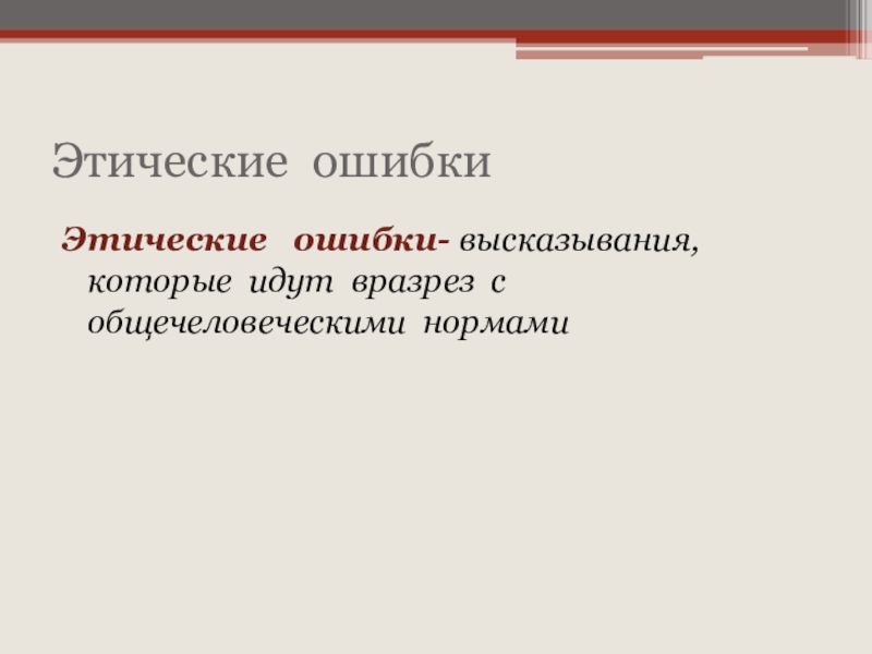 Этические ошибки- высказывания, которые идут вразрез с общечеловеческими нормами