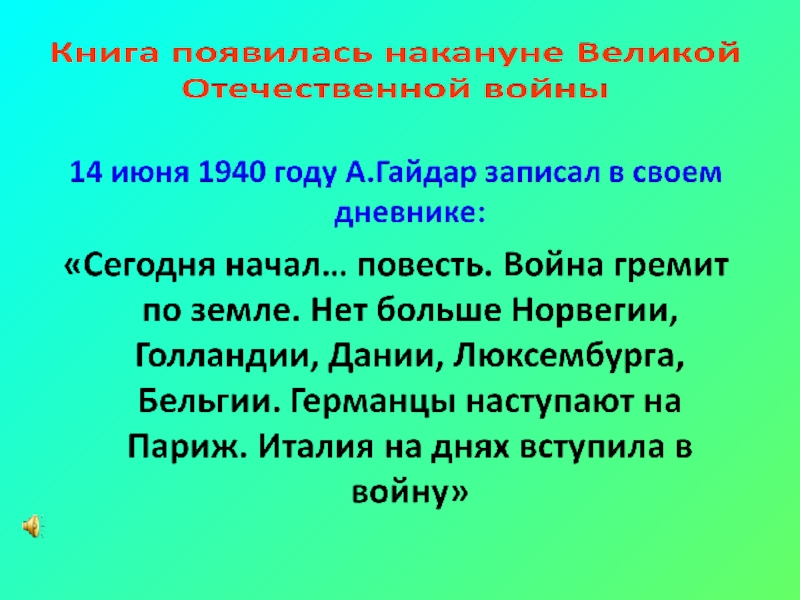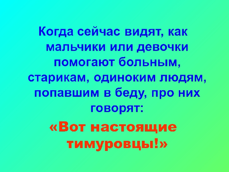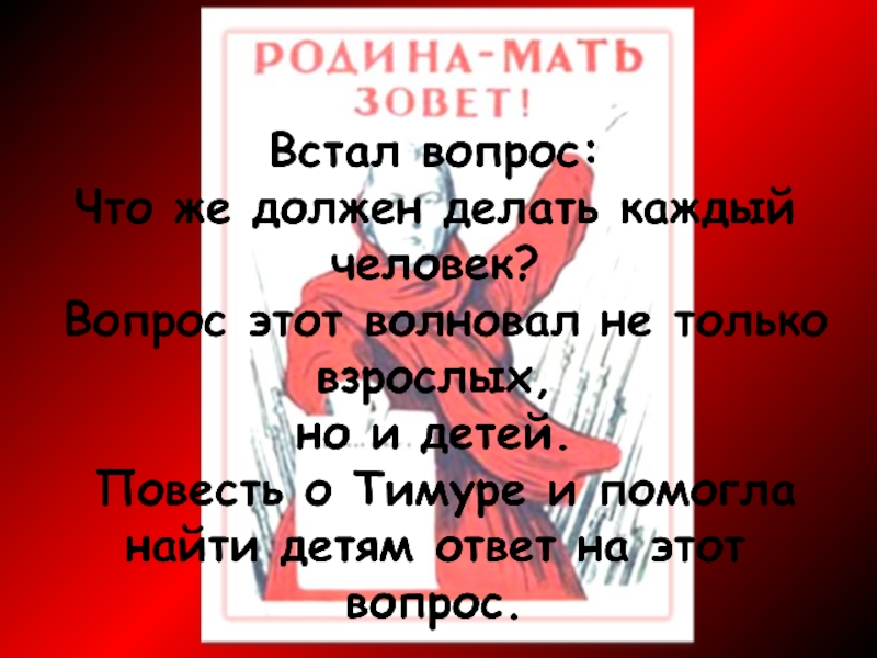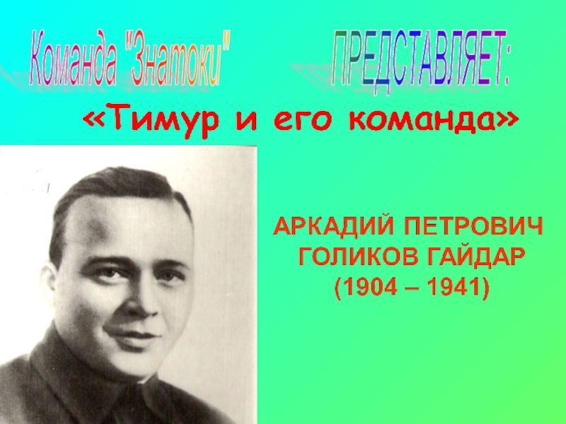 Презентация, доклад Представление произведения Тимур и его команда А. Гайдара