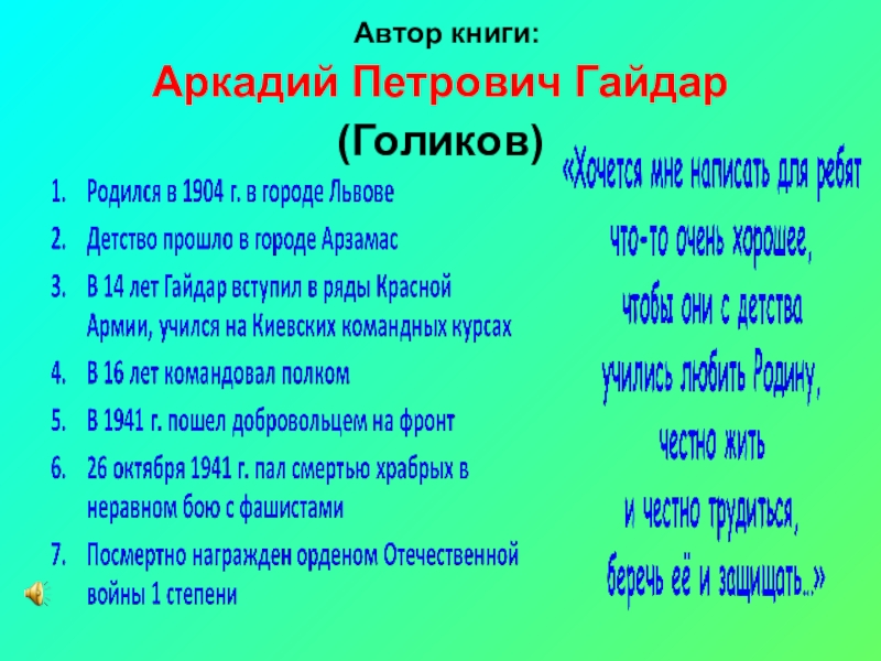 Слайд 3 Автор книги: Аркадий Петрович Гайдар (Голиков)