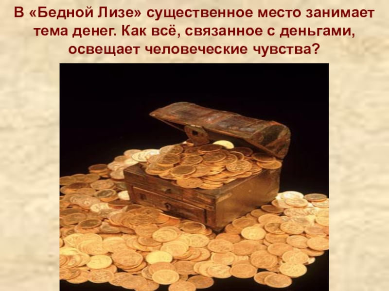 Слайд 11В «Бедной Лизе» существенное место занимает тема денег. Как всё, связанное