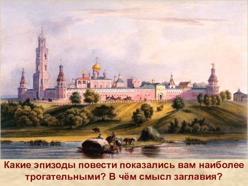 Слайд 22Какие эпизоды повести показались вам наиболее трогательными? В чём смысл заглавия?