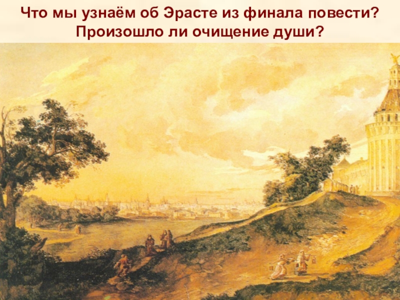 Слайд 14Что мы узнаём об Эрасте из финала повести? Произошло ли очищение
