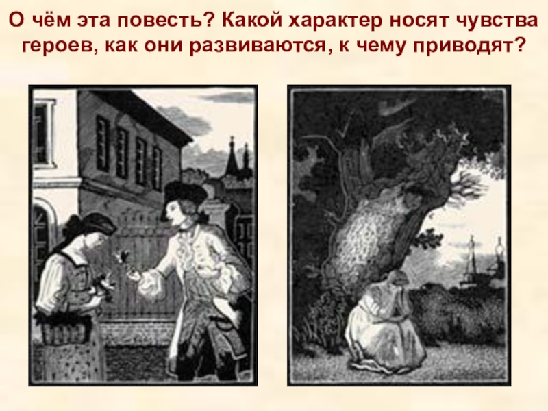 Слайд 8О чём эта повесть? Какой характер носят чувства героев, как они