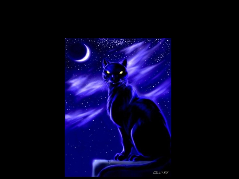 Слайд 1Чёрной ночью чёрный кот прыгнул в чёрный дымоход.