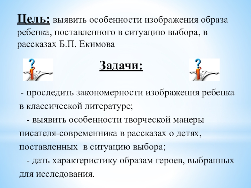 - выявить особенности творческой манеры писателя-современника в рассказах о детях, поставленных в ситуацию выбора;
