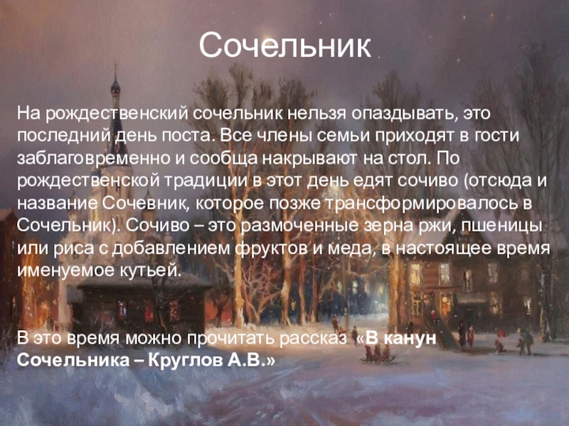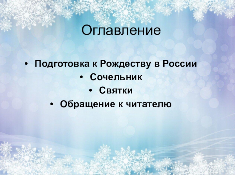 Оглавление Подготовка к Рождеству в России СочельникСвяткиОбращение к читателю