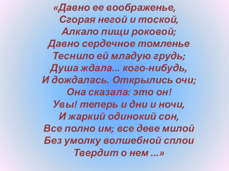 Слайд 36«Давно ее воображенье,