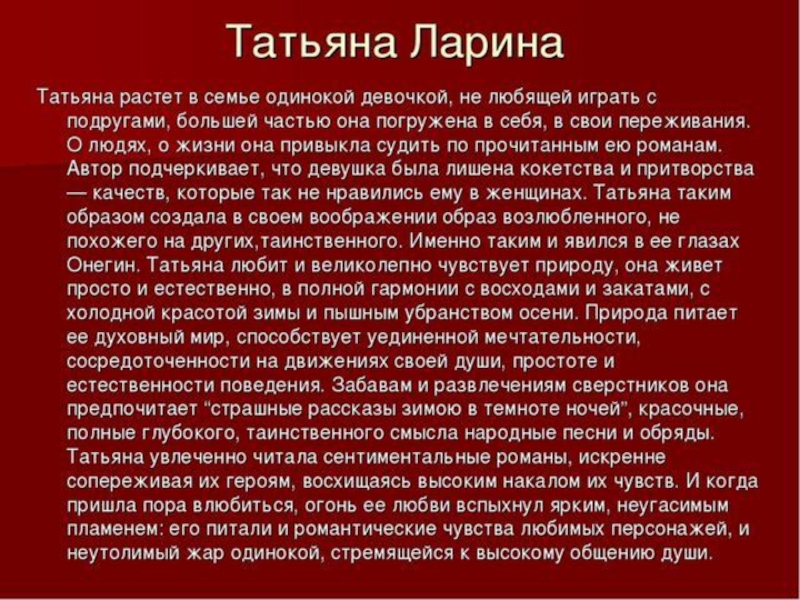 Образ Татьяны Лариной
