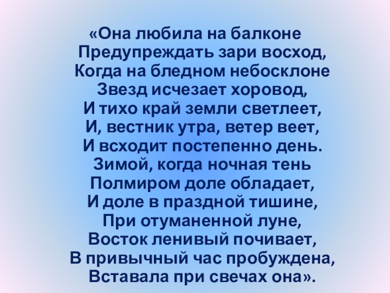 Слайд 19 «… летние ночи посвящались мечтательности, зимние - чтению романов, -