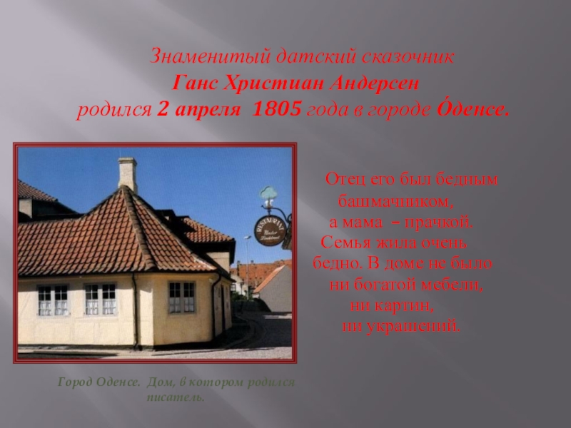 Город Оденсе. Дом, в котором родился писатель.
