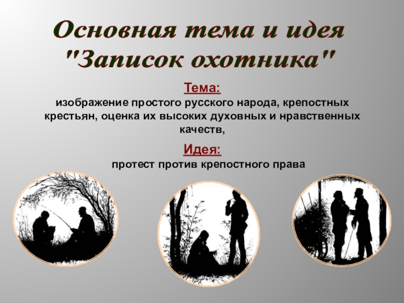 Во всех рассказах присутствует один и тот же герой - Пётр Петрович, дворянин из села Спасское. Он рассказывает о случаях, происходивших с ним во время охоты.